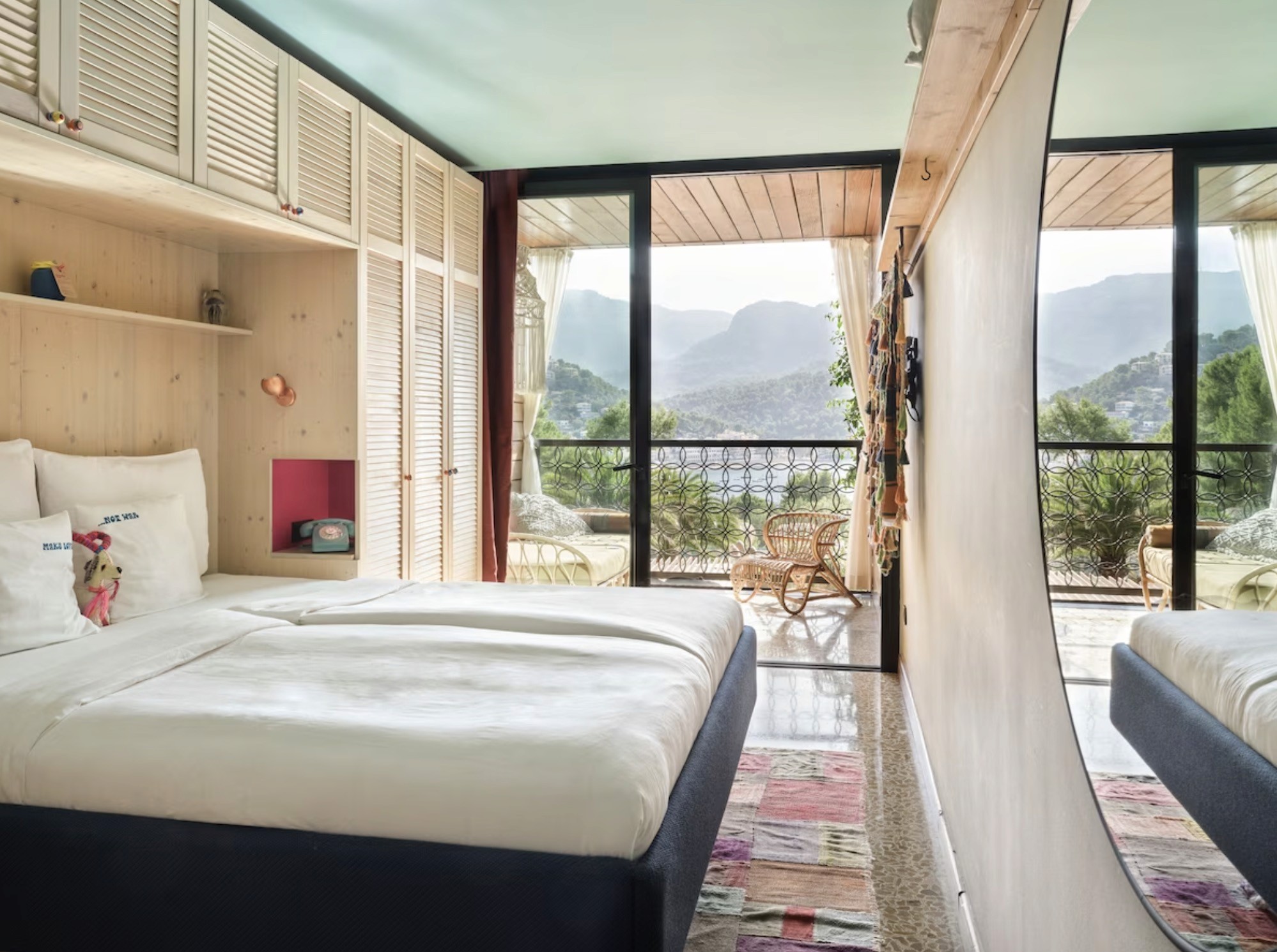 Bikini Island & Mountain Hotel sits above Port de Sóller, looking over the bay with the Tramuntana mountains behind it. The setting is one of the hotel’s biggest strengths, giving you both sea and mountains at once, with the harbour and beach a short walk below. This is a 114-room adults-only hotel, so it feels more like a lively lifestyle stay than a small boutique hideaway. The mood is relaxed and social, with a strong focus on views, food, music, the pool scene and wellness rather than quiet formality.