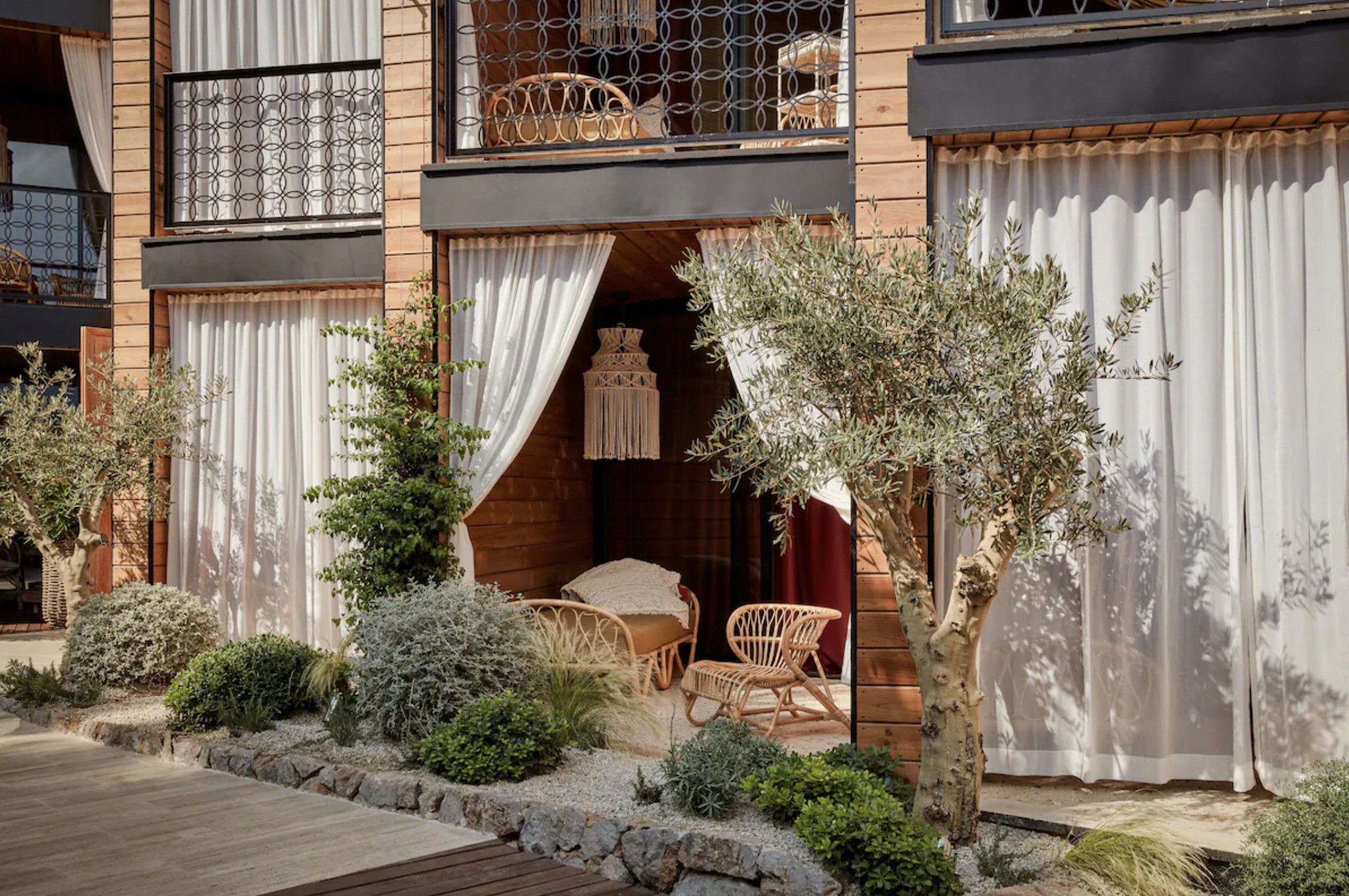 The pool area feels like the centre of it all, but it’s the design around it that makes it memorable. Patterned tiles, striped loungers, and a mix of plants and textures give it a very distinct identity.