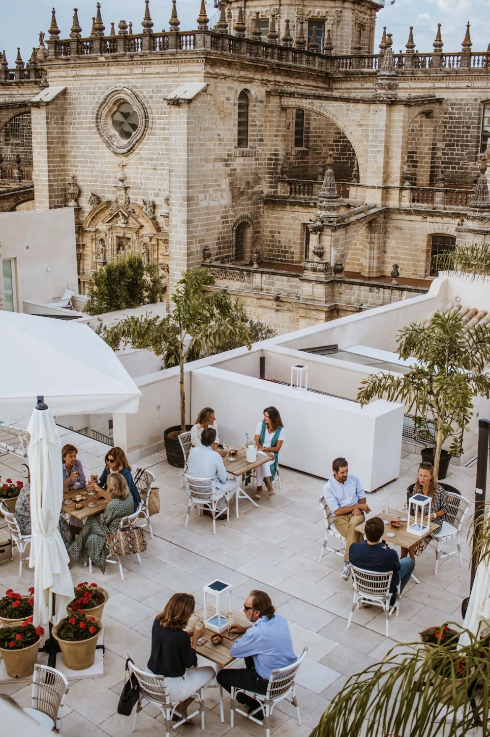 A rooftop pool and terrace facing the cathedral and Alcázar, which makes heading back to the hotel feel like part of the day rather than the end of it