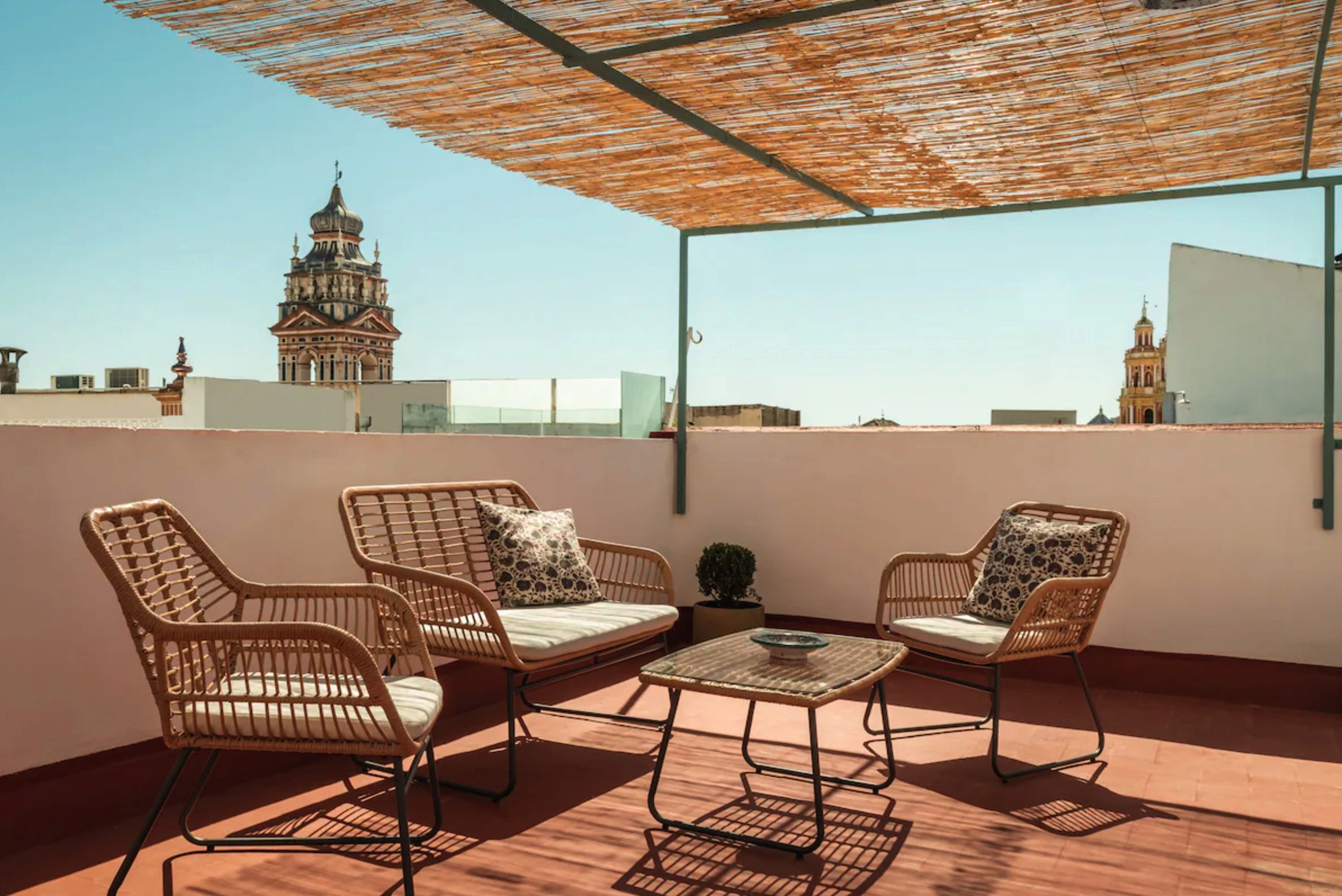 • A design-led boutique hotel located just steps from Seville Cathedral and the Giralda, blending modern style with classic Andalusian charm