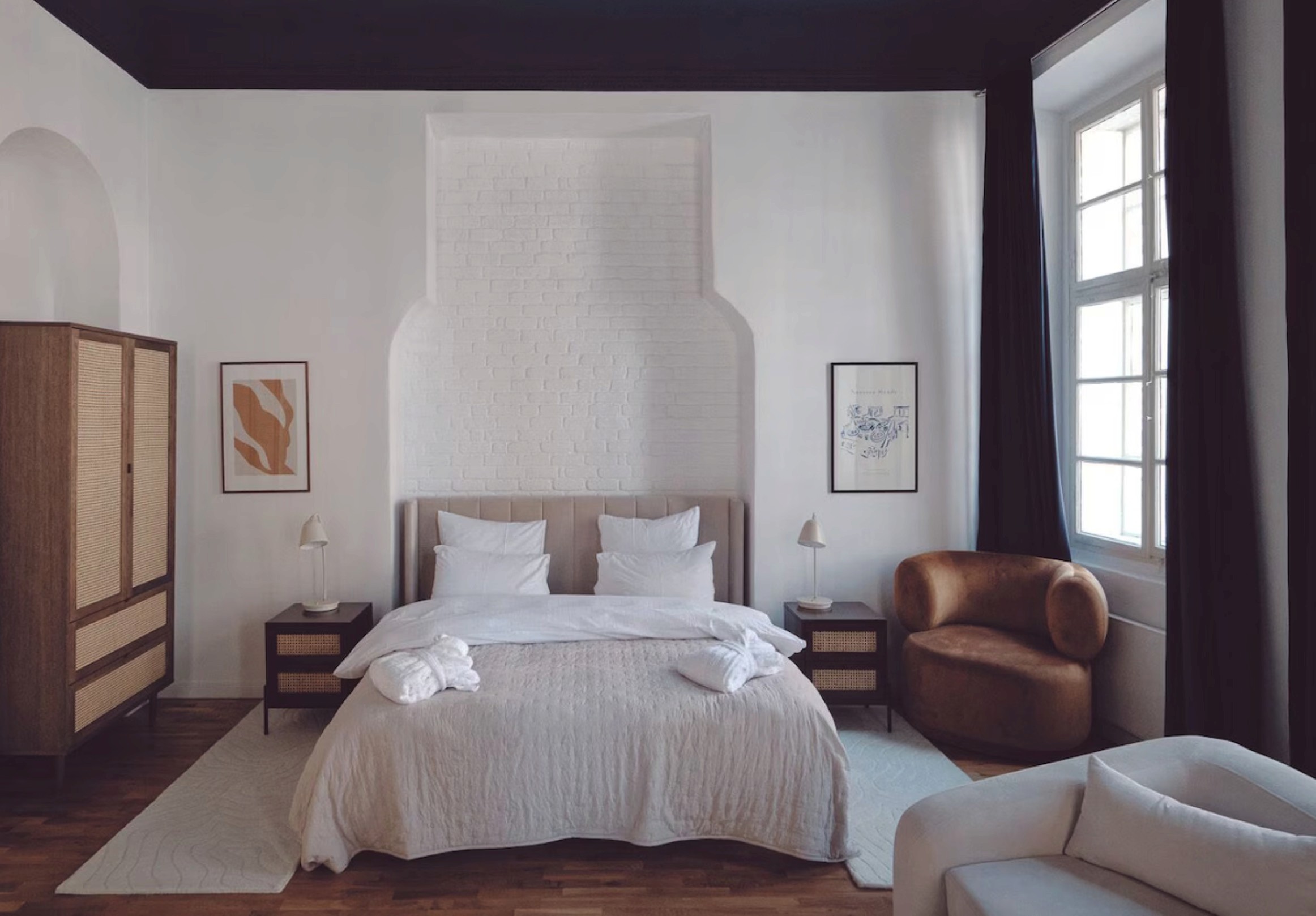 Domus Balthasar Boutique Hotel is a design-focused hideaway in a Baroque building with medieval foundations, right on Prague’s Royal Route in the Malá Strana district, just steps from Charles Bridge. With only eight rooms, the hotel blends high ceilings, original wooden beams and classic British design accents to create serene and stylish spaces full of character and light. Guests enjoy thoughtful amenities such as Nespresso machines, luxury Manufaktura toiletries and the option of a Deluxe Attic Studio with a freestanding bathtub. Breakfast is served at the nearby Miner’s Café, and from the hotel it is an easy walk to Prague Castle, Old Town Square and the Astronomical Clock.