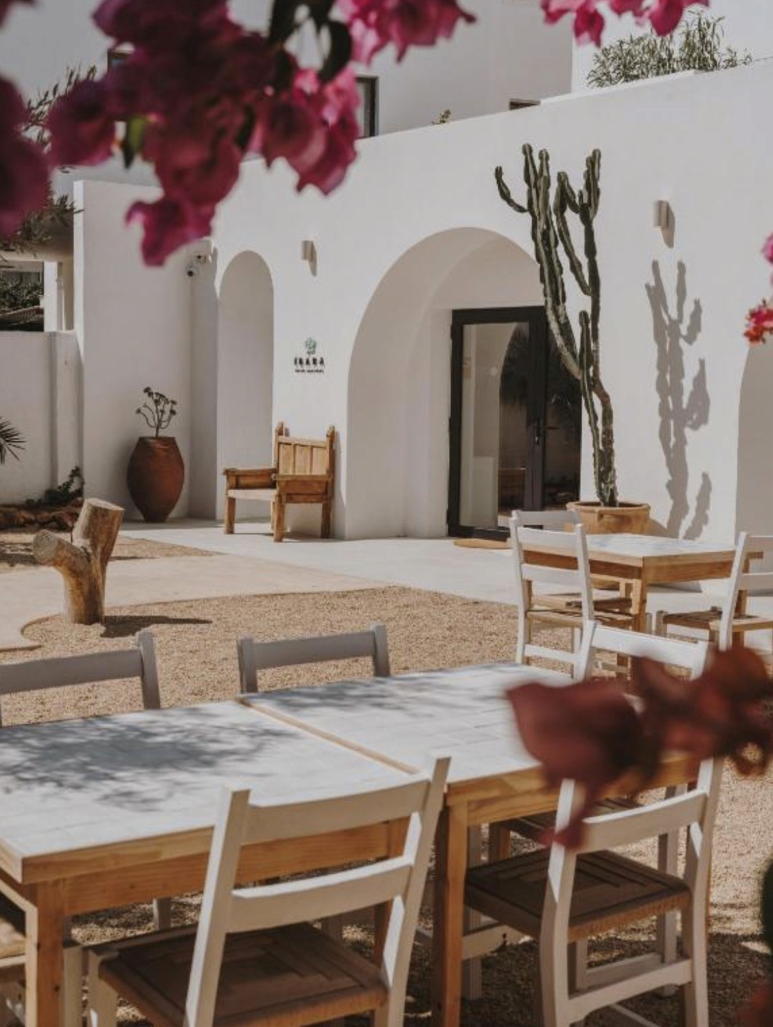 Set in Es Canar on Ibiza’s east coast, Íbara combines a beachside setting with a much calmer mood than the island’s louder stays. Partial sea-view rooms, garden-facing rooms, and a small scale of just 19 keys keep it feeling intimate rather than scene-driven.