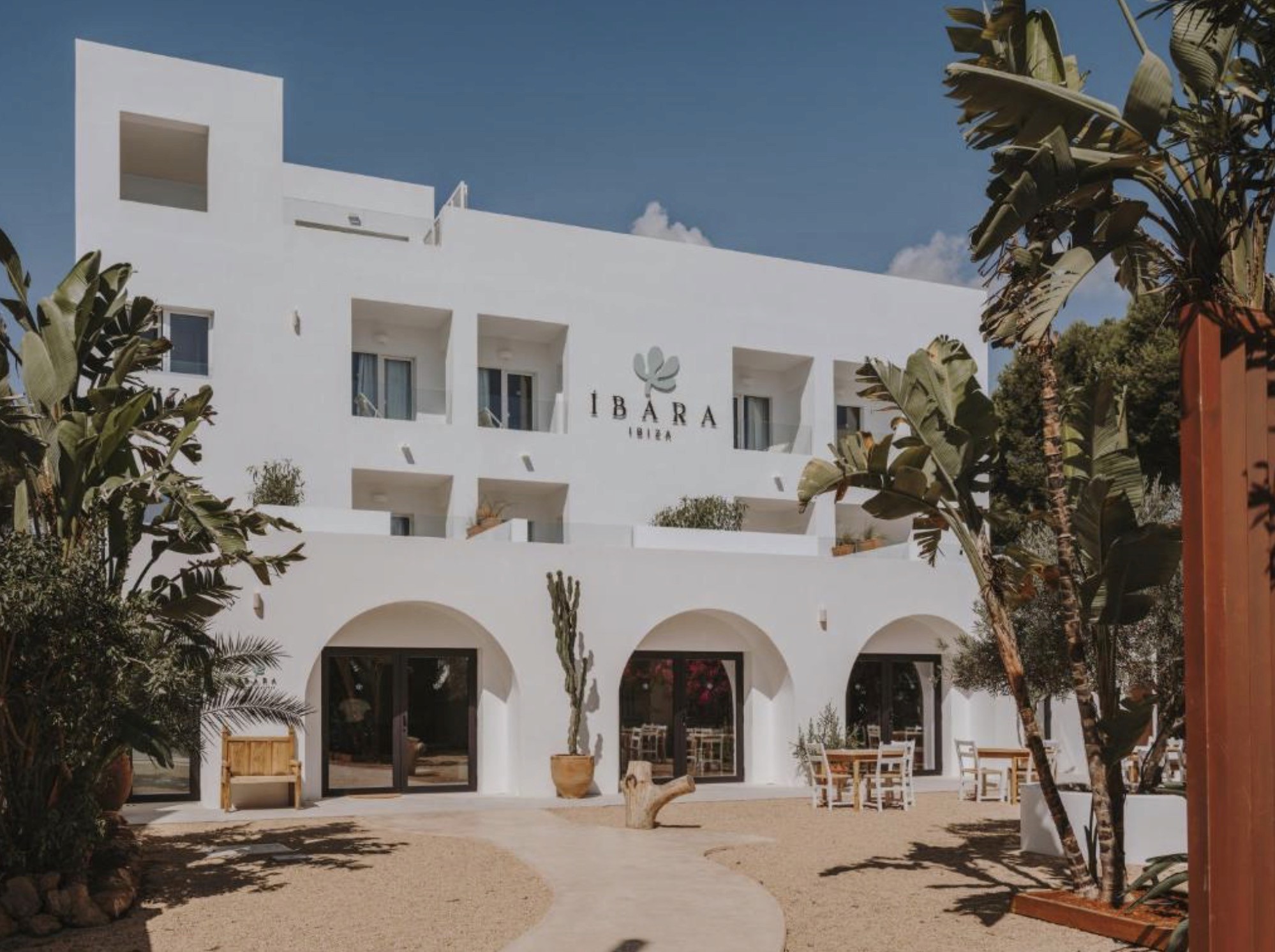 Íbara is a small beachfront boutique hotel in Es Canar on Ibiza’s quieter east coast, set right on the sand and a short walk from Cala Nova. It feels far calmer than the island’s party-focused areas, with a slower beach-town atmosphere and the sea as the main backdrop to the stay. The hotel has 19 rooms, which keeps the scale intimate and low-key. The overall style is clean and understated, with muted tones, patios or terraces, a garden, and a restaurant that gives the property a relaxed, easy rhythm rather than a big-resort feel.