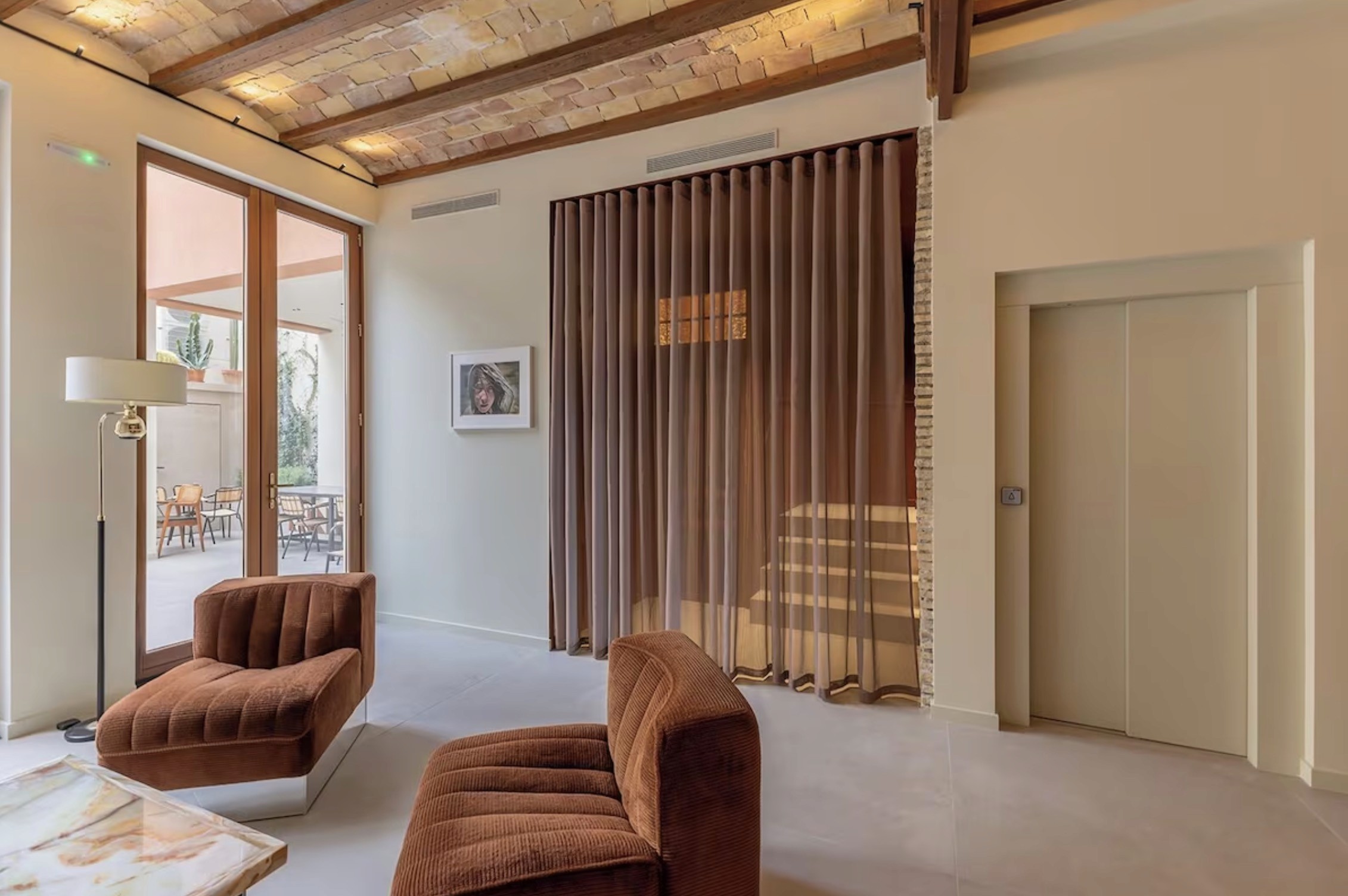 La Novieta Boutique Hotel is set on a quiet residential street just beside Ruzafa, one of Valencia’s liveliest neighbourhoods for cafés, restaurants and late dinners. It occupies a restored 1924 townhouse, and the whole place feels more like staying in a well-designed home than a typical city hotel. With only four rooms, the atmosphere is intimate and calm, with vintage pieces, original details and a small patio that gives the property a softer, more personal feel. You are close to the city without being in the thick of it, with the old town around 15 minutes on foot and Turia Park around 10 minutes away.