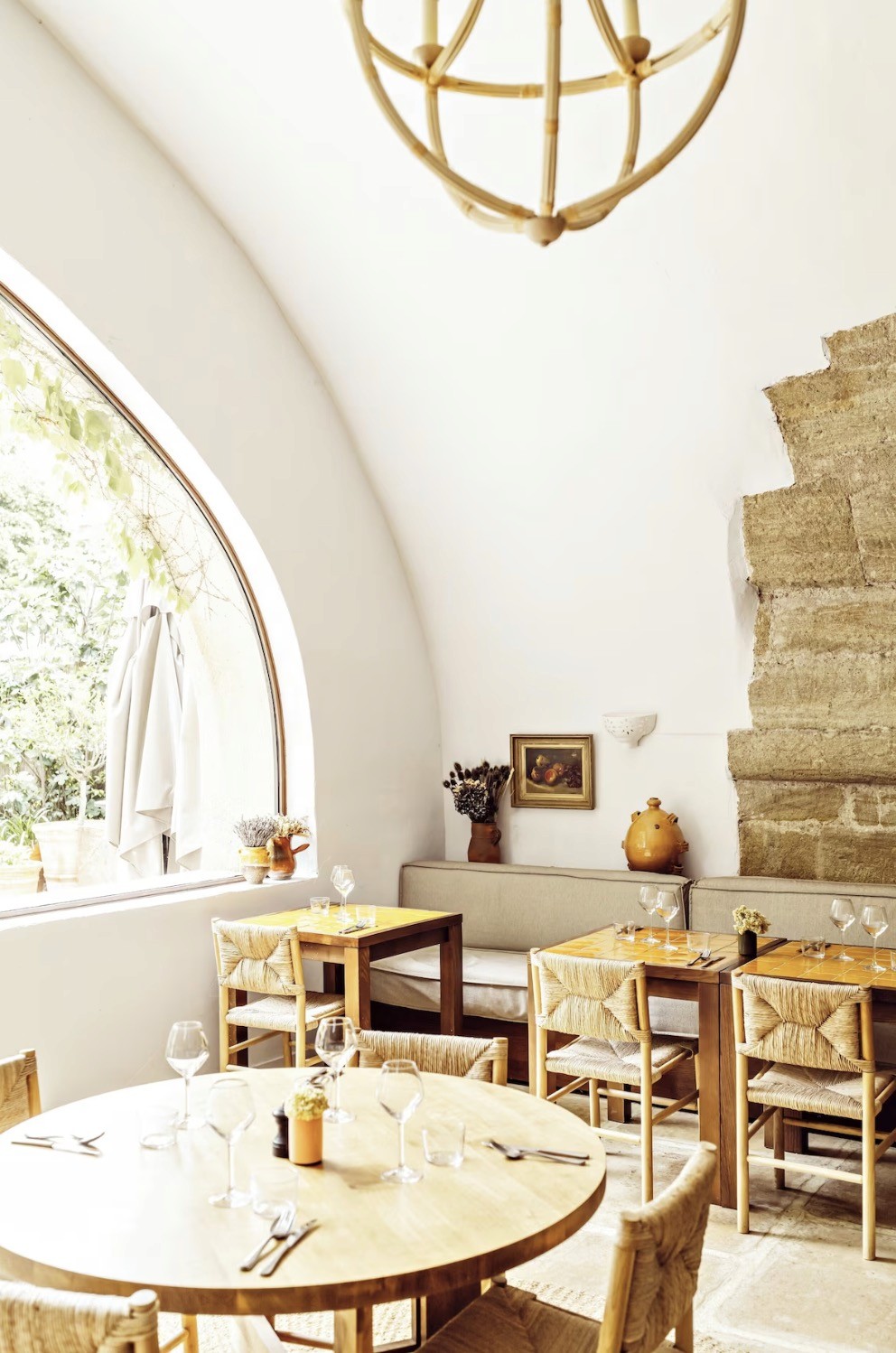 Interiors built around terracotta, sisal, untreated plaster, Provençal fabrics, and handmade furniture, which gives the whole hotel a warm, grounded feel