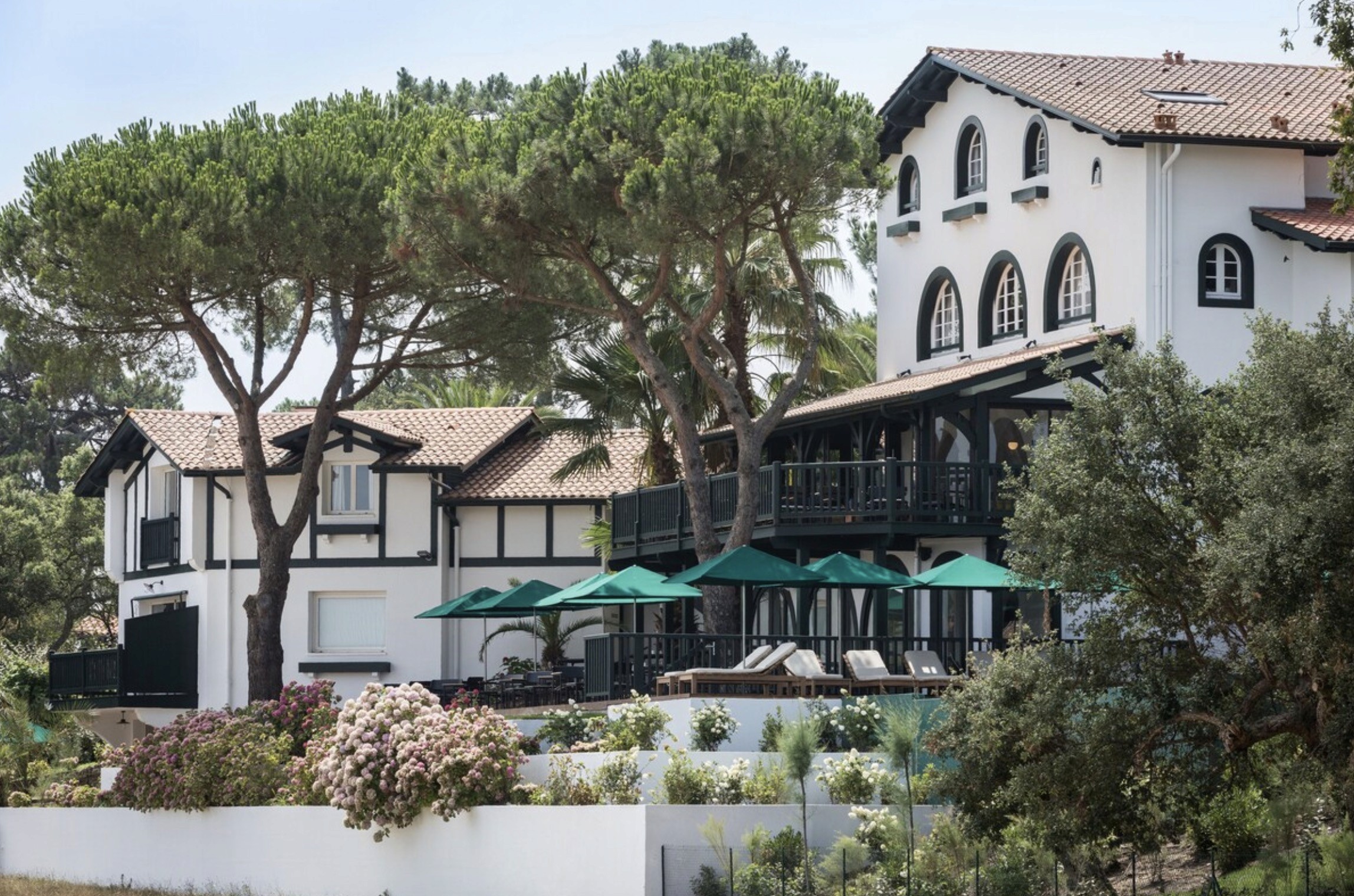 Les Hortensias du Lac sits on the shore of Hossegor’s marine lake, with the Atlantic just across the road and pine trees all around. The setting is one of its biggest strengths: you get the calm of the lake, easy access to the ocean, and a slightly removed feel from the busier parts of town. The hotel has 25 rooms and suites and feels much more like a refined surf lodge than a classic seaside hotel. There is a strong wellness side to the stay, with a substantial spa, a heated outdoor pool facing the lake, a fitness room, and yoga and pilates in high season.