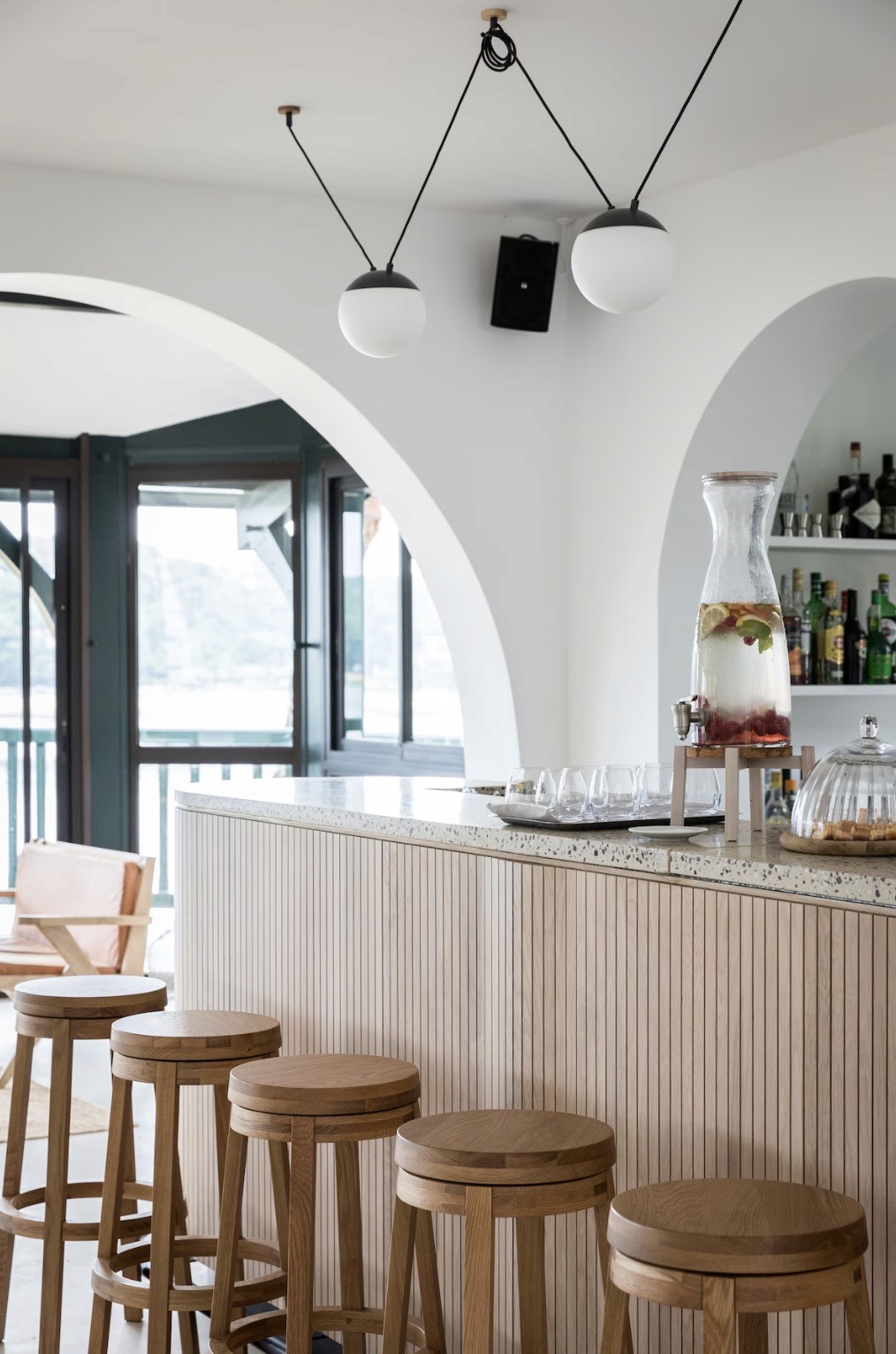 It has more of a waterside house feel than a conventional resort, helped by the lakefront position and the way the common spaces open onto the outdoors.