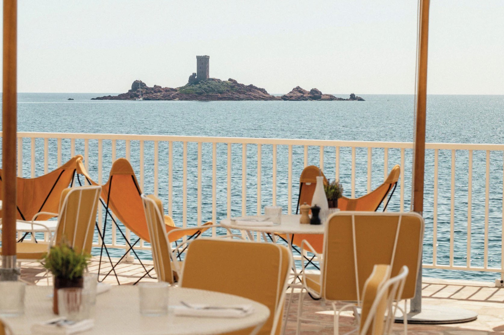Les Roches Rouges sits directly on the rocks, with ladders into the Mediterranean and a seawater pool carved into the coastline. It’s the kind of place where you wake up, swim before breakfast, and structure the entire day around water.
