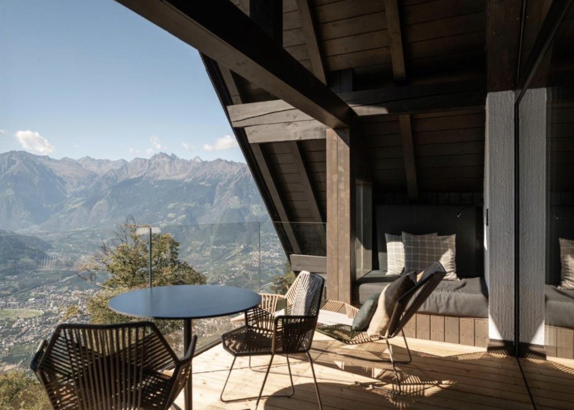 Elevated mountain setting above Merano with panoramic valley and peak views