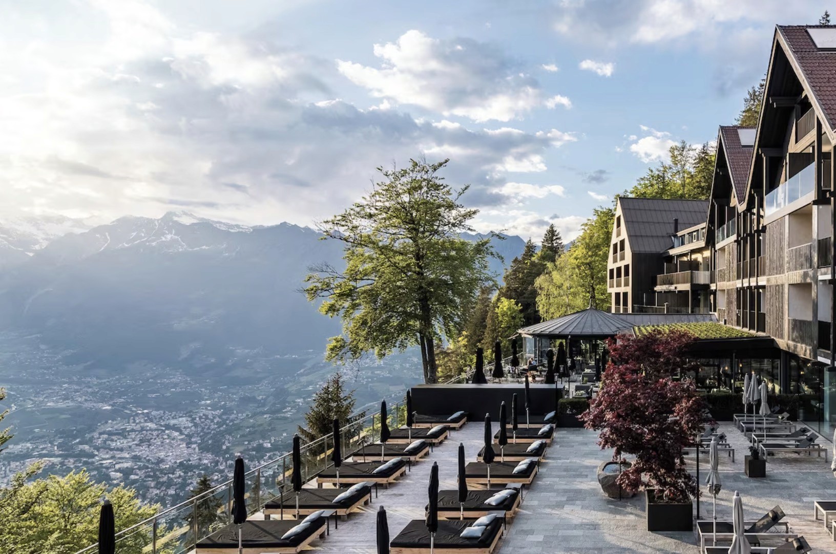 Avelengo sits high above Merano, surrounded by forests, mountain air, and wide open views of the Dolomites. It’s quiet, scenic, and feels far removed from the pace of everyday life. Set right on the hillside, Miramonti Boutique Hotel is designed to make the most of its surroundings, with panoramic terraces and a deep sense of calm throughout. It’s the kind of place where you slow down without even trying.