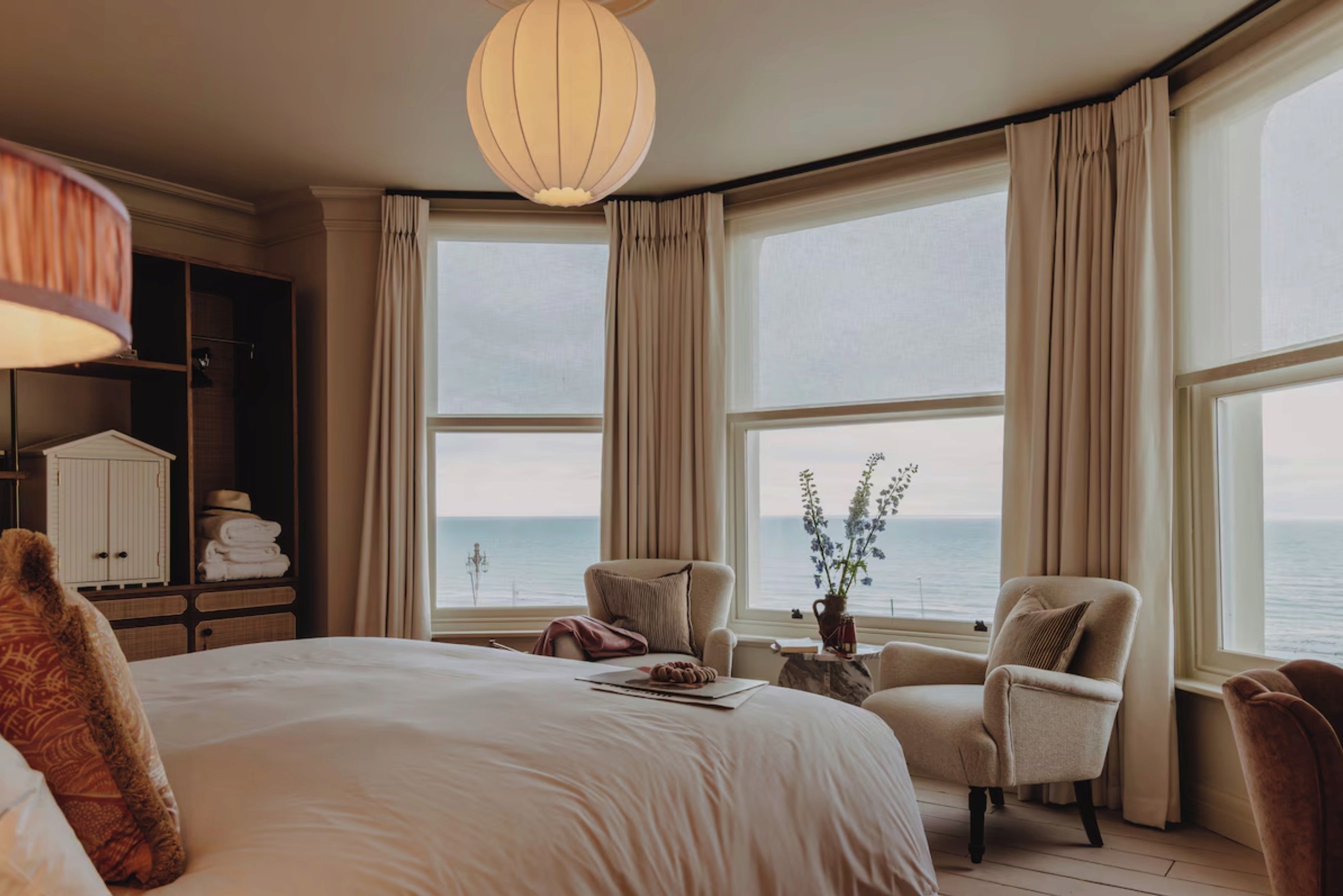 NO. 124 Brighton is a seafront boutique hotel on Kings Road in Brighton, set across a row of historic townhouses with sweeping views over the promenade and Brighton beach. It has a playful, design-forward feel that still comes across warm and welcoming, with cosy lounges, little corners to settle into, and a lively “Brighton by the sea” energy that suits both weekends away and longer stays. Food and drink are a big part of the experience here. The hotel is home to Pearly Cow, its signature restaurant, plus relaxed spaces for cocktails, casual bites and a terrace that is great for slower afternoons. There is also a FieldTrip Spa on site, designed for proper switching off, which makes it a strong option if you want a beachside stay with a little wellness built in.