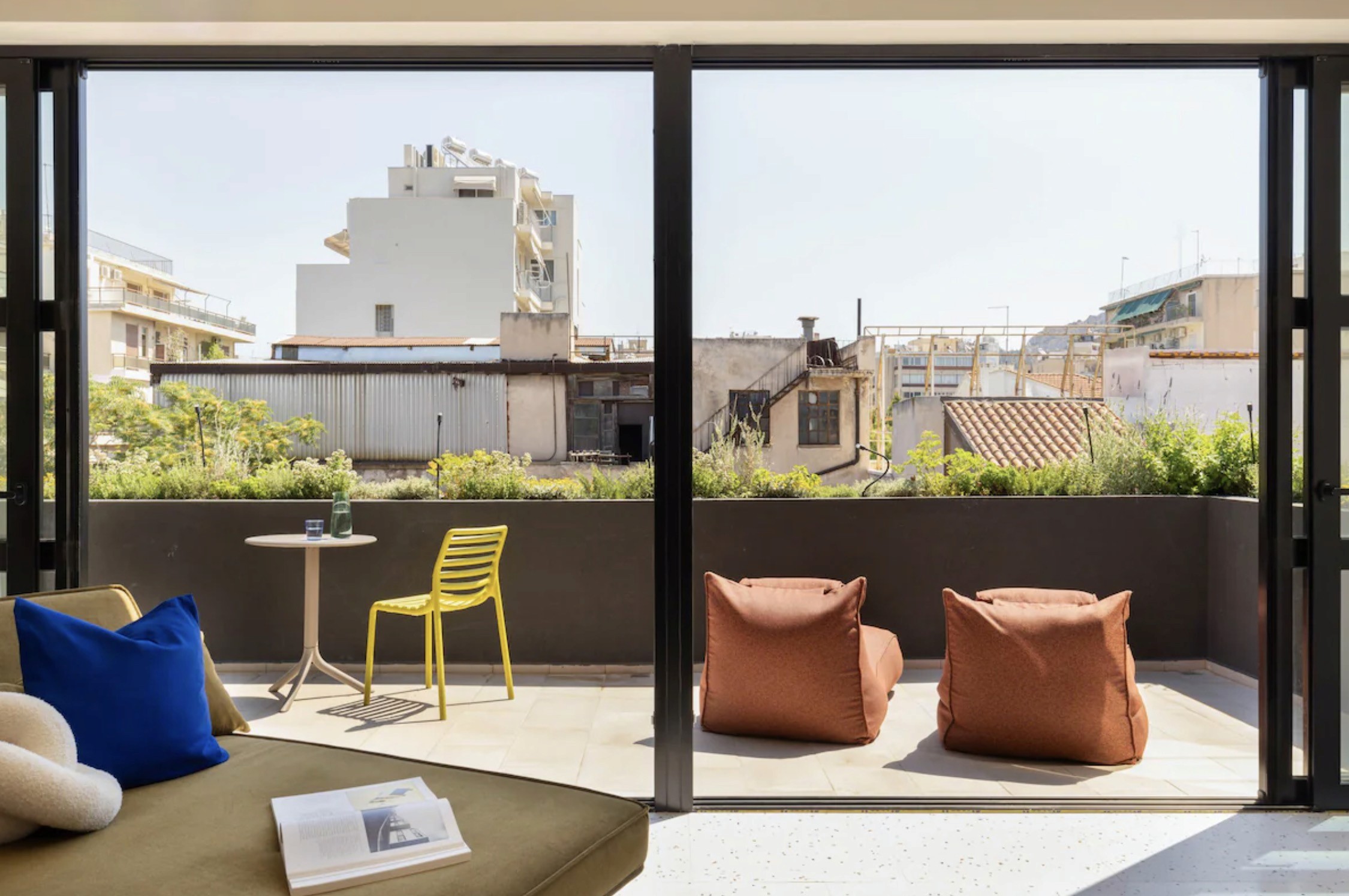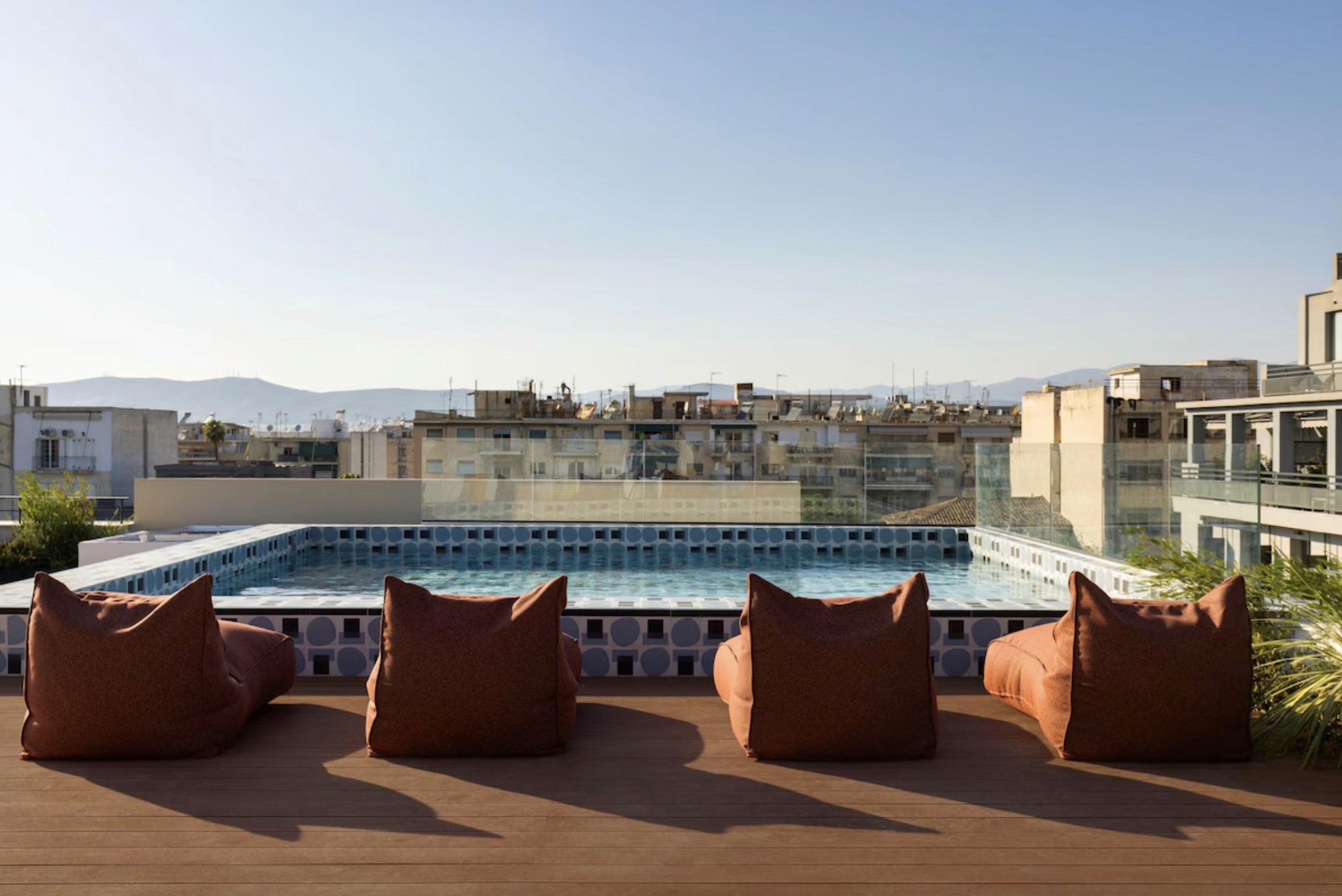 A rooftop pool in the middle of central Athens, giving the hotel an outdoor focal point that changes the rhythm of the day and makes coming back in the afternoon feel worthwhile