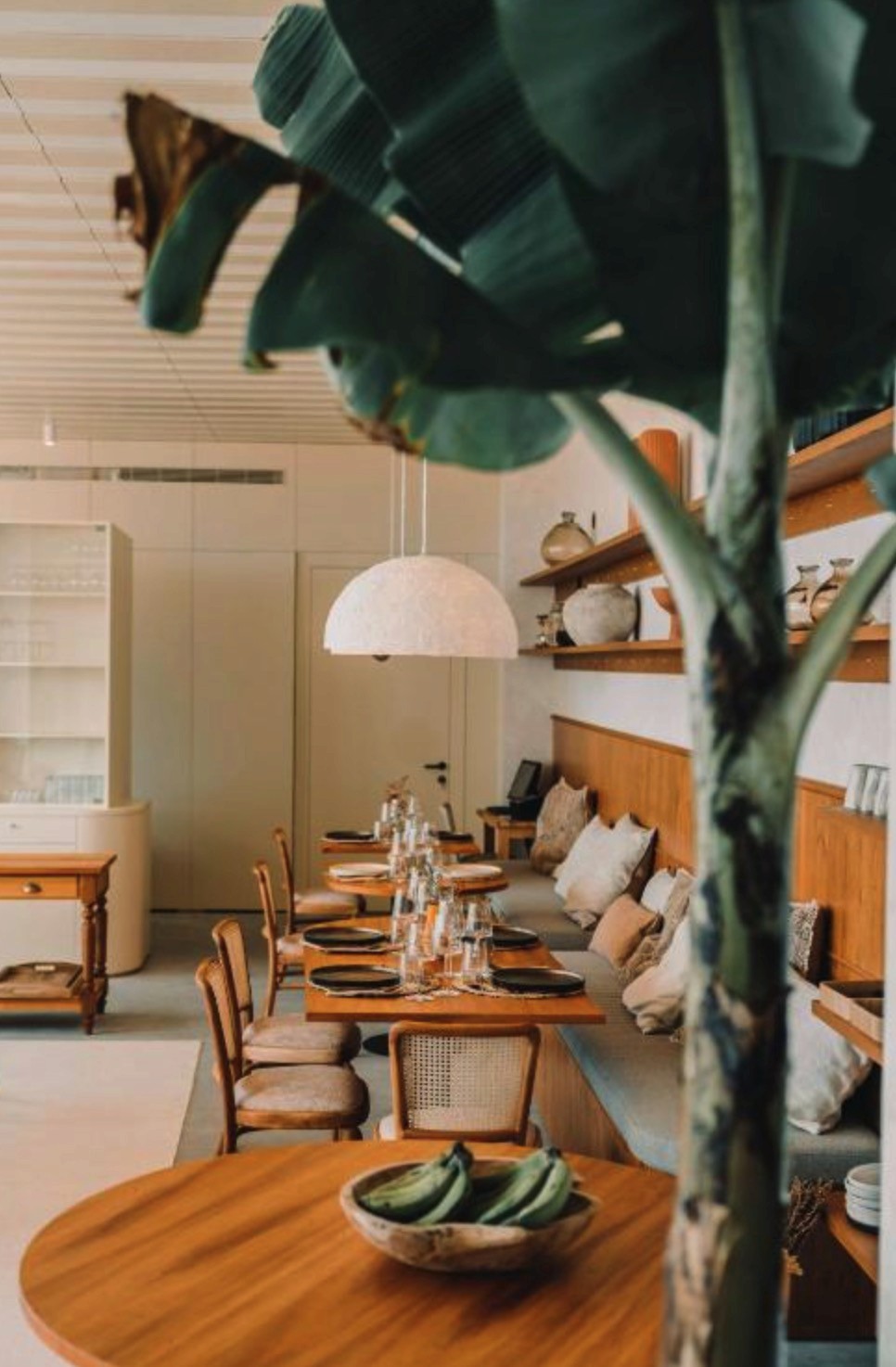 A lush courtyard with banana trees and planting that gives the hotel a calm, almost hidden feel despite being in town