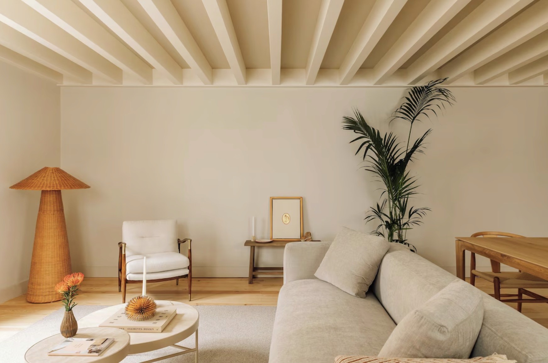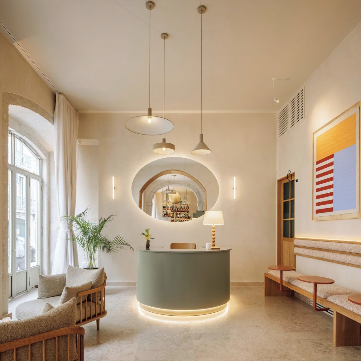 A very calm interior mood, with Portuguese-made details and a soft, natural palette