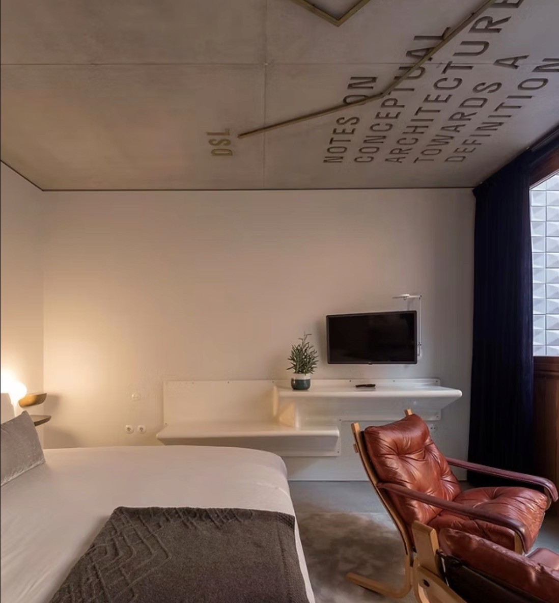 Hotel Tipografia do Conto is a creative hideaway set in a former typography workshop in the city’s Cedofeita district. Every detail reflects its literary and artistic roots, from engraved ceilings and sculptural concrete walls to bespoke furnishings crafted by Portuguese designers. The result is a space that feels both raw and refined, where design and storytelling quietly intertwine. The hotel’s rooms are minimalist yet warm, each one telling its own story through textures, typography and light. Guests can enjoy a peaceful garden terrace, a pool and a relaxed bar that feels like an artist’s studio. Just outside, Porto’s galleries, cafés and independent shops bring the neighbourhood to life, making it a perfect base for those who love design and culture in equal measure.