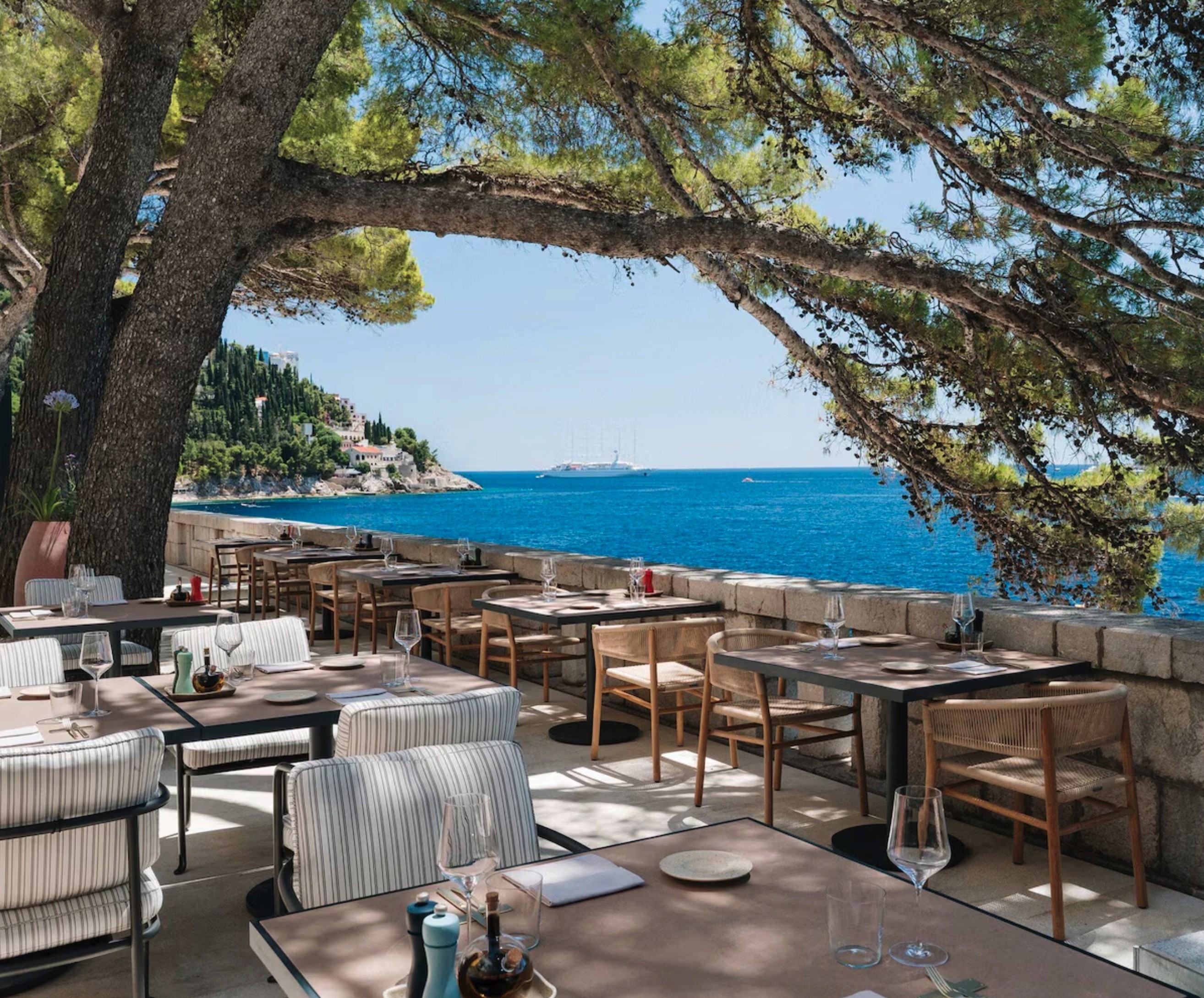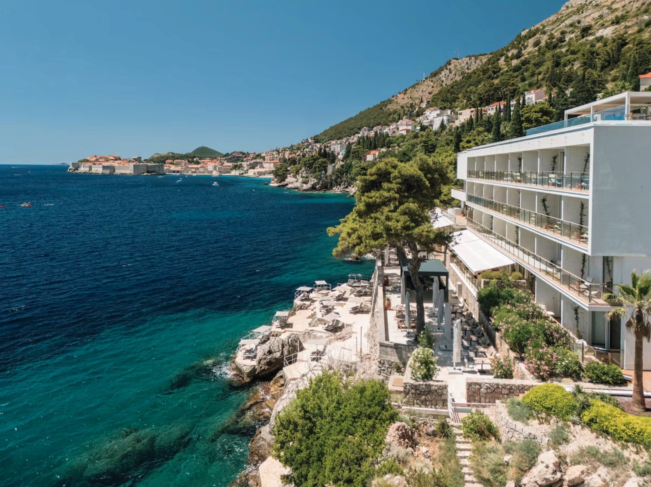 • A dramatic cliffside hotel overlooking the Adriatic Sea and the island of Lokrum, offering one of the most striking coastal settings in Dubrovnik